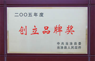 我公司由于2005年獲得了“安徽省名牌產品”和“安徽省著名商標”兩項榮譽,被縣委、縣政府評為“2005年度創(chuàng)立品牌獎”,兩項榮譽分別獲得現金10000元的獎勵!