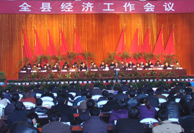 2006年2月10日上午,全縣經濟工作會議在縣體育館隆重召開。這次全縣經濟工作會議的主要任務是,全面貫徹落實中央和省、市經濟工作會議和縣委十屆七次全體(擴大)會議精神,認真總結了2005年經濟工作,表彰了各項先進,全面部署了2006年各項目標任務,進一步統(tǒng)一全縣上下的思想認識,搶抓機遇,扎實若干,努力實現全縣經濟又快又好地發(fā)展,構建和諧當涂,為順利實施“十一五”規(guī)劃開好局、起好步??h長操隆山作了全縣經濟工作報告,縣委書記毛長江發(fā)表了重要講話。縣委、縣人大、縣政府、縣政協(xié)、縣紀委、縣人武部負責同志,縣委委員、候補委員,縣紀委委員,縣人大常委、政協(xié)常委,曾擔任縣級實職的離退休老干部,各工委書記,各鄉(xiāng)鎮(zhèn)黨委書記、人大主席,鄉(xiāng)鎮(zhèn)長和文書,各村(居委員)總支(支部)書記、主任和縣直各部、委、局、辦負責人、部分機關干部代表等共計2000多名干部職工參加了會議。