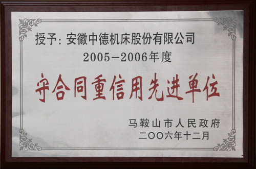 我公司成為馬鞍山市合同信用協(xié)會(huì)成立大會(huì)的理事單位,同時(shí)被市政府授予馬鞍山市2005-2006年度守合同重信用先進(jìn)單位稱號(hào)。