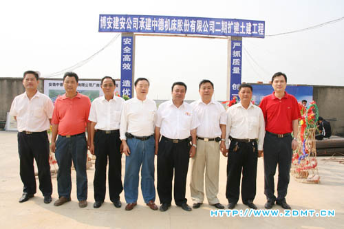 2007年9月9日上午9點28分,隨著挖掘機(jī)隆隆的挖掘聲,煙花爆竹隨即響徹云宵,安徽中德機(jī)床股份有限公司廠房二期擴(kuò)建工程奠基儀式正式開始,公司主要領(lǐng)導(dǎo)、各部門負(fù)責(zé)人以及工程項目負(fù)責(zé)人等參加了開工儀式。