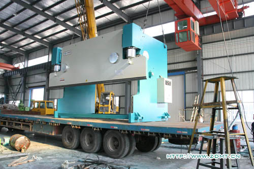 由于機器體積較大,高度超過3.5米,重量在50噸以上,所以采用了分體式運輸,工作臺與機器主體分離開來。這種大型機床由于其體積與重量的關系,并不是很常見,需求量相對來講少點,而對制造商的要求也相對比較高,其中無不體現(xiàn)中德產品在客戶心目中認可度!