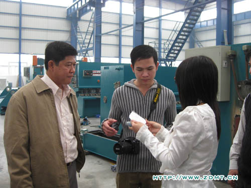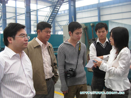 KONG KHEANG先生已經(jīng)跟我們通過網(wǎng)絡(luò)和電話聯(lián)系了近一個月,對中德機床表現(xiàn)了強烈的購買需求。此次專程拜訪中德,正是為了洽談有關(guān)雙機事宜,順便實地考察。KONG KHEANG先生從事板料加工多年,對機器的操作是輕車熟路,目前自己的工廠里也有幾臺被撕去標牌的中國機床。這一次,實實在在的看到中德的機床以后,光光是機身油漆的光潔,整體的外觀,就使他很激動,親自體驗了一下我們一臺正在調(diào)試的折彎機,然后心滿意足的笑了。